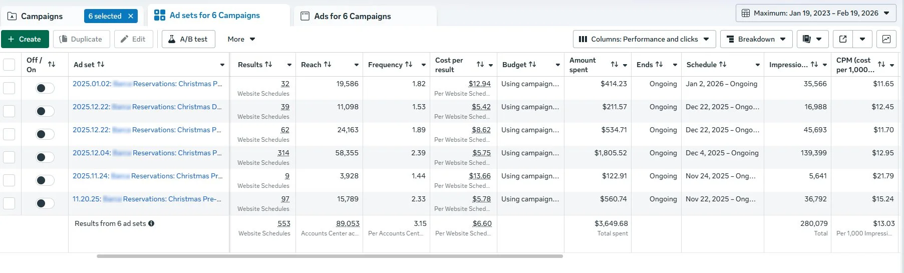 We ran Meta reel ads highlighting the festive decor at the restaurant over the holidays to amplify the impression of a fun social experience. maxaimize targeted a slightly younger demographic than the usual 35+ yr old clientele within a 15 mile radius to find a new audience. The creative was shot to create the feeling of an immersive environment for a festive night out with drinks and food.